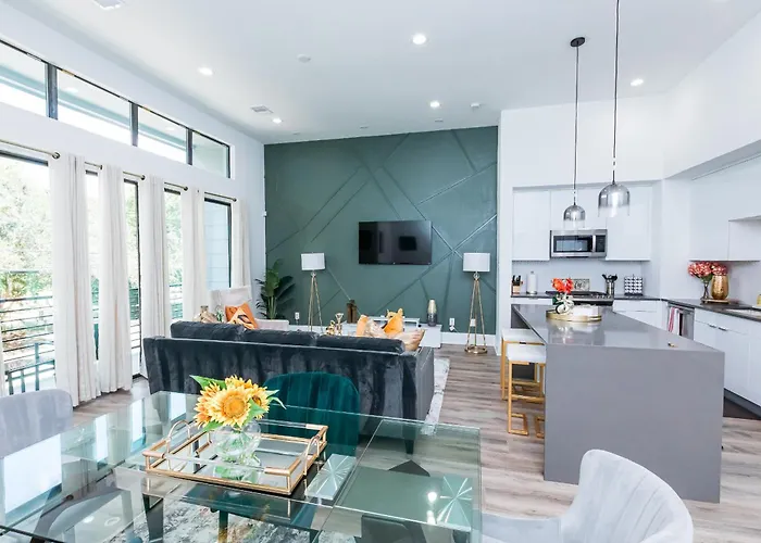 La casa de vacaciones goza de una ubicación a unos 10 minutos en coche del Zoológico de Houston y a 4 km de los Campos de Béisbol de Rice Village. Esta villa también da acceso a lugares de culto como la Capilla Rothko, situada a 4,1 km. Entre los lugares de interés educativo cercanos se encuentra la Universidad de Houston, situada a unos 15 minutos en coche de esta propiedad.